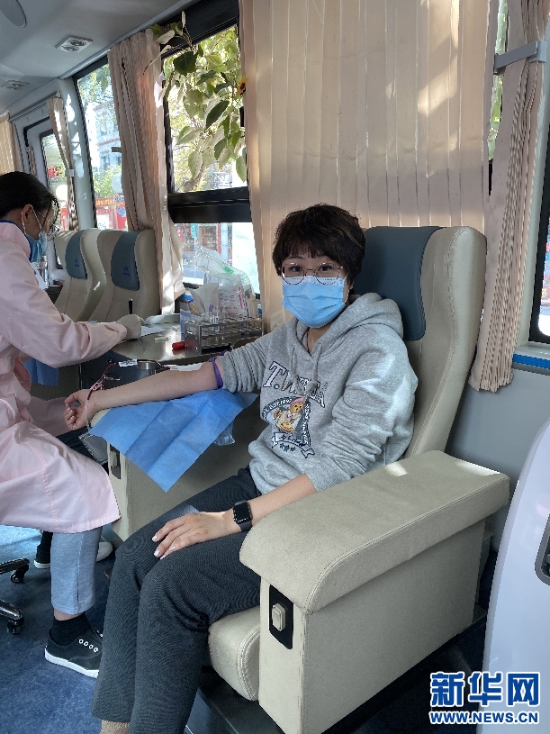 楊長(zhǎng)捷(右)無償獻(xiàn)血