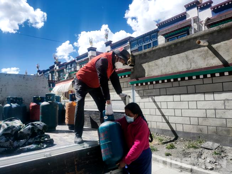志愿服務(wù)隊(duì)志愿者們通過(guò)電話(huà)、微信群等方式排查,詢(xún)問(wèn)并收集群眾基本生活物資(面粉、大米、煤氣罐加氣、蔬菜)需求,安排專(zhuān)人和車(chē)子到洛扎縣城進(jìn)行代購(gòu),并以最快的速度把物資送到群眾家門(mén)口。
