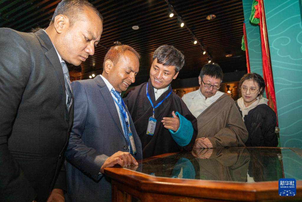 首屆《四部醫(yī)典》國(guó)際學(xué)術(shù)交流會(huì)參會(huì)嘉賓參觀(guān)《四部醫(yī)典》專(zhuān)題展覽(10月18日攝)。新華社記者 旦增尼瑪曲珠 攝