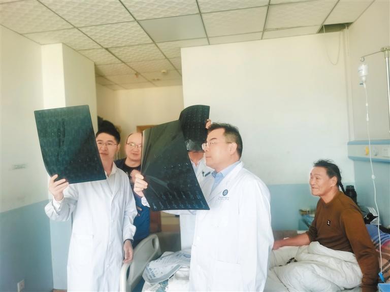 南方醫(yī)科大學第三附屬醫(yī)院院長黎程(右二)查看患者X光片?! ?/p>
