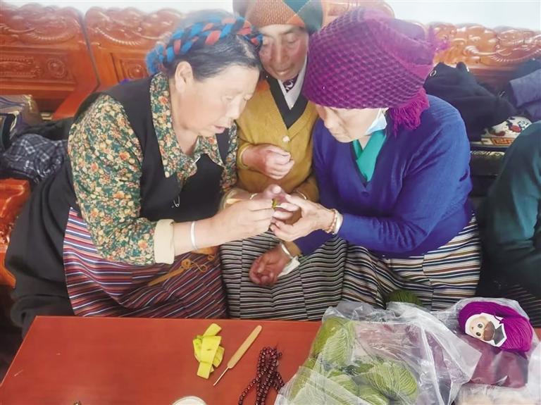 圖由拉薩市民政局提供 幸福院的老人正在進(jìn)行針織技藝交流。