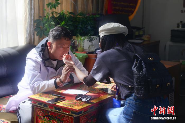 7月25日,西藏拉薩,海外華文媒體代表體驗(yàn)藏醫(yī)診療。王利文 攝