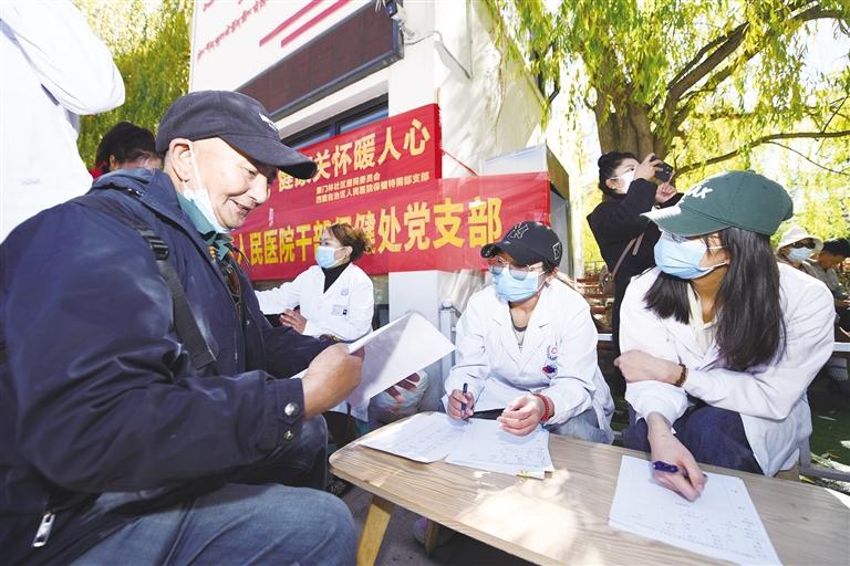 拉薩市城關(guān)區(qū)策門林社區(qū)居委會聯(lián)合自治區(qū)人民醫(yī)院干部保健處黨支部在宗角祿康公園開展義診進(jìn)社區(qū)活動。西藏日報記者 唐斌 攝