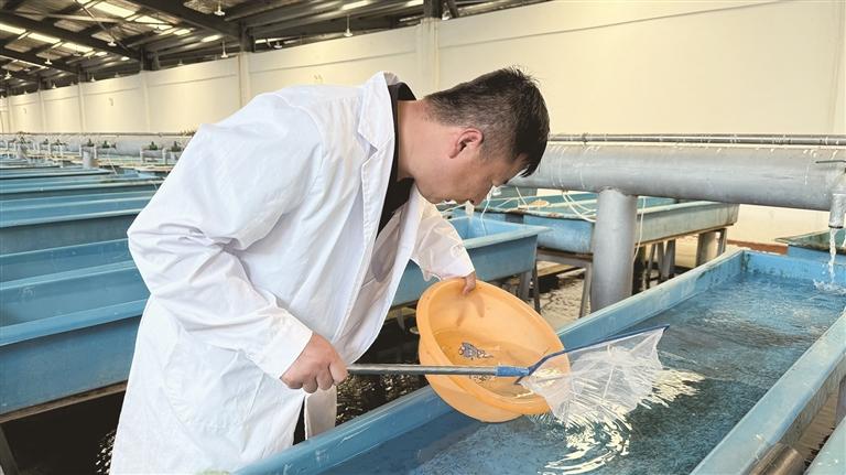 基因組信息更直接指導(dǎo)了全人工繁育體系的優(yōu)化?!拔覀儼l(fā)現(xiàn)黑斑原鮡的性腺發(fā)育與光照周期、水溫存在強(qiáng)關(guān)聯(lián)?!蓖跞f(wàn)良說(shuō),團(tuán)隊(duì)還通過(guò)轉(zhuǎn)錄組測(cè)序揭示了苗種拒食行為的分子機(jī)制——其腸道缺乏消化植物蛋白的基因,這促使科研人員開(kāi)發(fā)出以小型水生動(dòng)物為主的專(zhuān)用飼料,成功解決了開(kāi)口餌料難題。