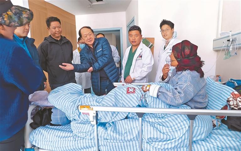 圖為南京市第一醫(yī)院關節(jié)外科專家團隊了解患者術后康復情況。記者 格桑倫珠 攝