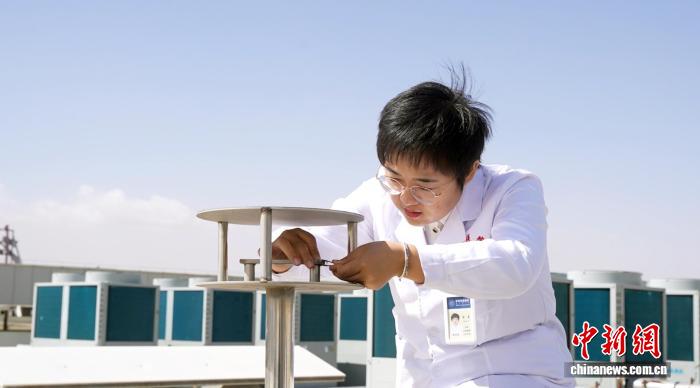 4月4日,內(nèi)蒙古托克托縣,托克托縣醫(yī)院變態(tài)(過敏)反應(yīng)科主任黃慧正在做花粉監(jiān)測(cè)。 崔博群 攝