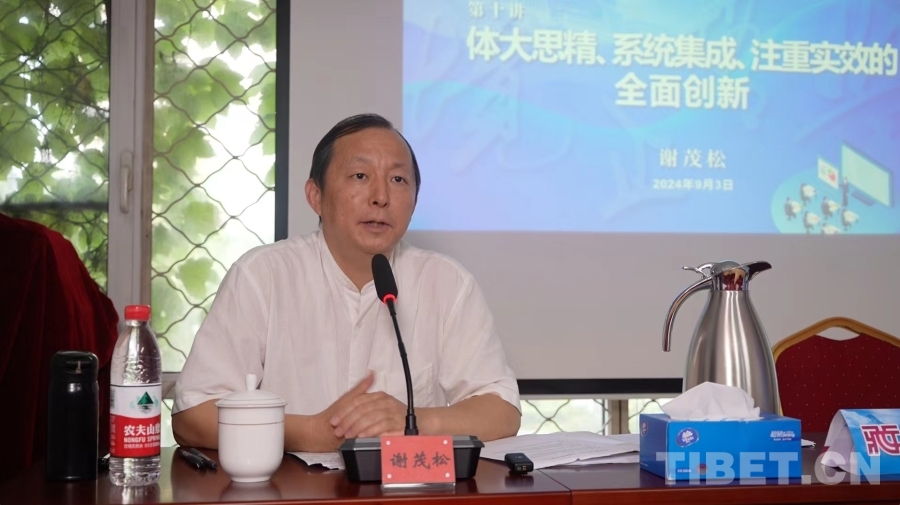 9月3日下午,國家創(chuàng)新與發(fā)展戰(zhàn)略研究會資深研究員,中國文明和中國道路研究中心主任,清華大學(xué)國家戰(zhàn)略研究院資深研究員謝茂松應(yīng)邀到中國西藏信息中心,做客“榮豐大講堂”,以《體大思精、系統(tǒng)集成、注重實效的全面創(chuàng)制》為題,分享其學(xué)習(xí)黨的二十屆三中全會精神的體會和認(rèn)識。