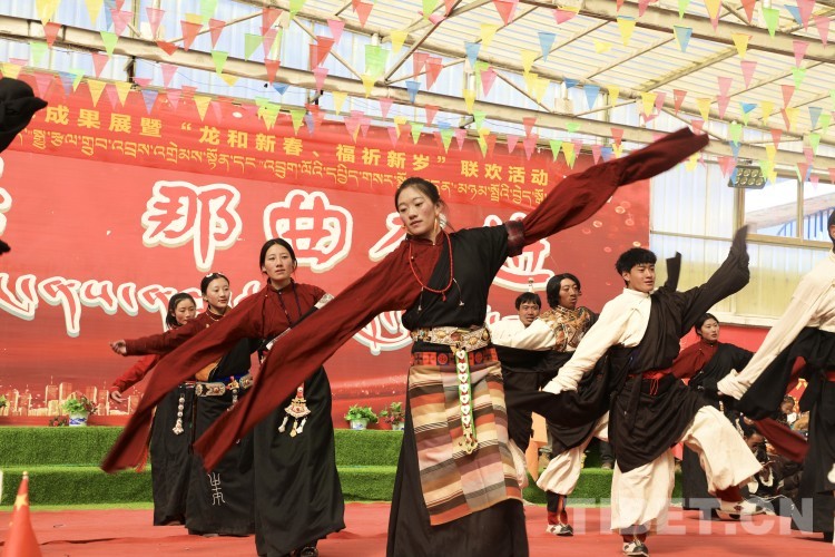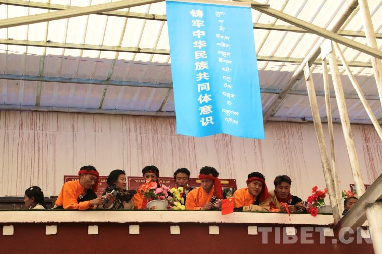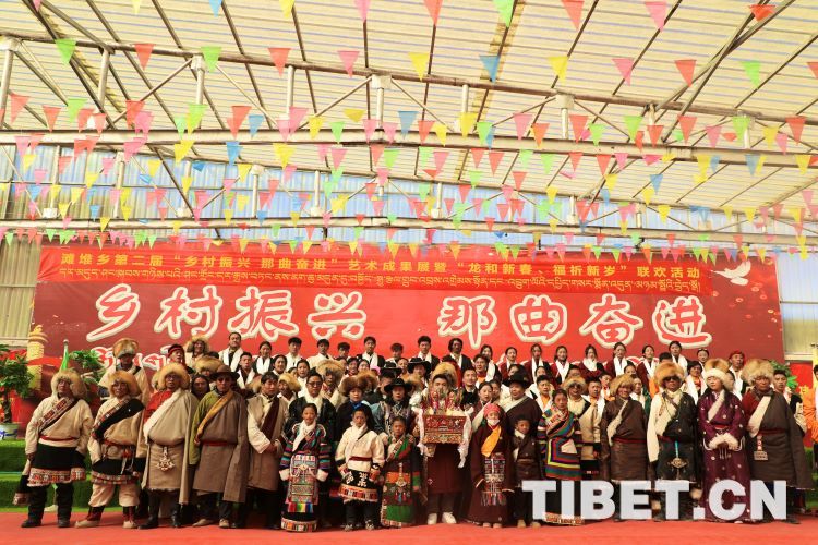 中國(guó)西藏網(wǎng)訊 2月10日,中國(guó)西藏信息中心“新春走基層”青藏線采訪組一行,來(lái)到西藏自治區(qū)那曲市安多縣灘堆鄉(xiāng),適逢當(dāng)?shù)卦谂e辦灘堆鄉(xiāng)第二屆“鄉(xiāng)村振興 那曲奮進(jìn)”藝術(shù)成果展暨“龍和新春、福祈新歲”聯(lián)歡活動(dòng)。采訪組一行來(lái)到鄉(xiāng)政府對(duì)面的灘堆鄉(xiāng)文化站,記者在現(xiàn)場(chǎng)看到許多穿著具有當(dāng)?shù)孛褡逄厣椀娜嗽诖司奂T诤闷嫘牡尿?qū)使下,經(jīng)詢問(wèn)當(dāng)?shù)馗刹坎胖溃瑸橄灿?024春節(jié)和藏歷新年,感激黨和國(guó)家的關(guān)心關(guān)懷,歌頌如今來(lái)之不易的幸福生活,鄉(xiāng)村文藝隊(duì)特此精心準(zhǔn)備了文藝節(jié)目,以嶄新的面貌和昂揚(yáng)的精神展現(xiàn)新時(shí)代牧民群眾的精神風(fēng)貌和幸福生活。