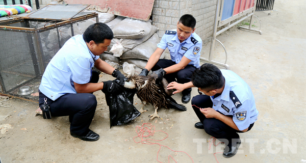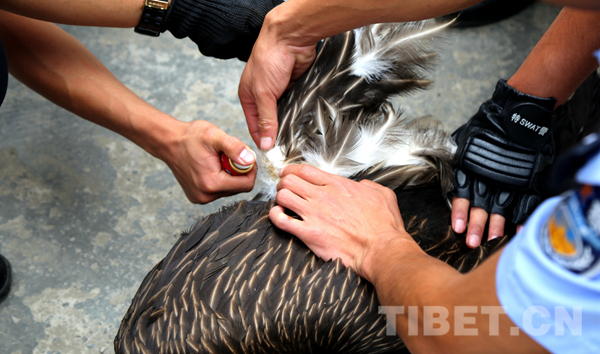 過了一會兒,正在路邊施工的工人發(fā)現(xiàn)了我,他們立即打電話。后來我才知道,他打到了丹巴縣環(huán)林局野??疲ㄟ@可是專門負責保護動物的機構(gòu)喔)。隨后,就見有穿制服的工作人員來了,救星?。∷麄兘o我檢查了身體,發(fā)現(xiàn)了我右爪脫臼傷情,就把我?guī)Щ氐搅说ぐ蜕止簿帧?/p>
