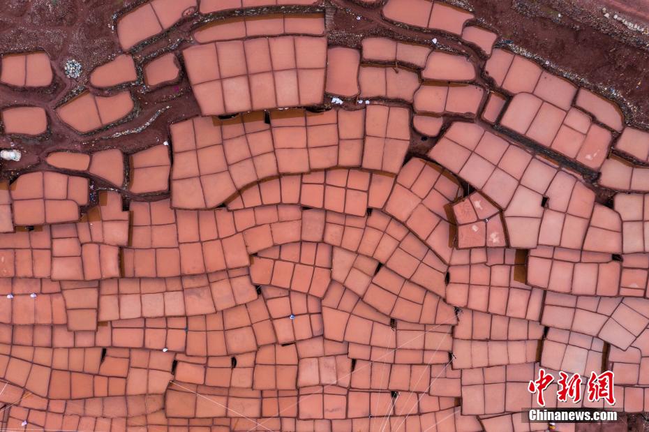 當(dāng)?shù)孛癖娫跒憸娼祥_山鑿井,取出巖層深處含鹽的鹵水倒入鹽田,經(jīng)陽光蒸曬、風(fēng)干,結(jié)晶成鹽。何蓬磊 攝