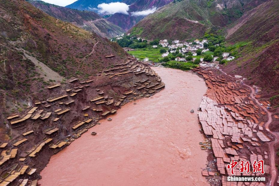 航拍瀾滄江畔的西藏千年古鹽田