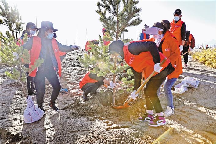 圖為山南市干部職工在雅江河谷開展植樹造林活動(dòng)。