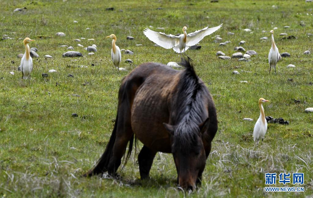 牛背鷺在易貢國(guó)家地質(zhì)公園棲息(5月22日攝)。新華社記者 張汝鋒 攝