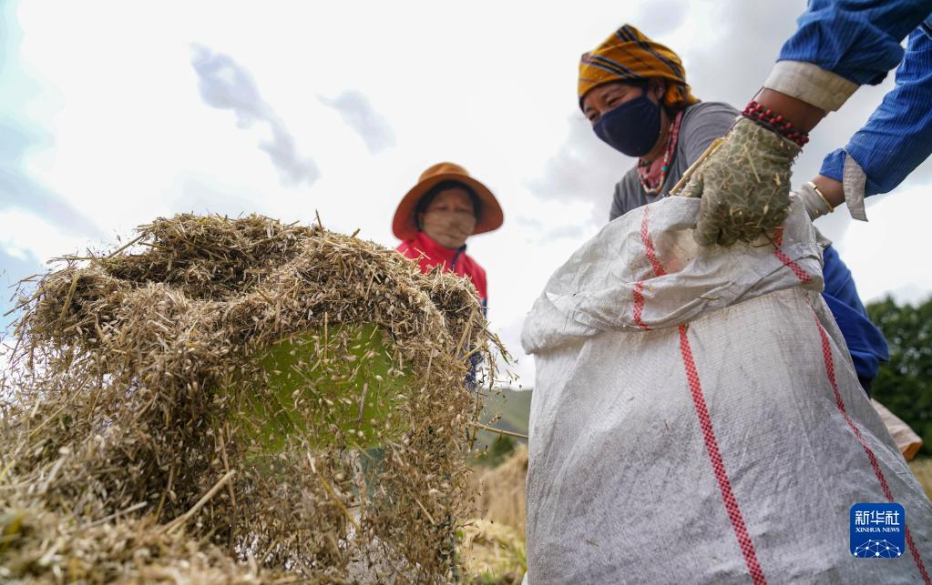 拉薩市達(dá)孜區(qū)克日村的農(nóng)民在收獲青稞(9月6日攝)。新華社記者 晉美多吉 攝
