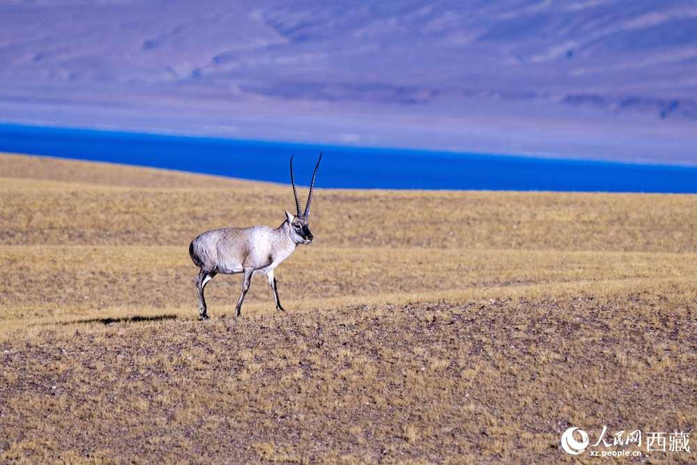 藏羚羊在色林錯湖畔。徐馭堯攝