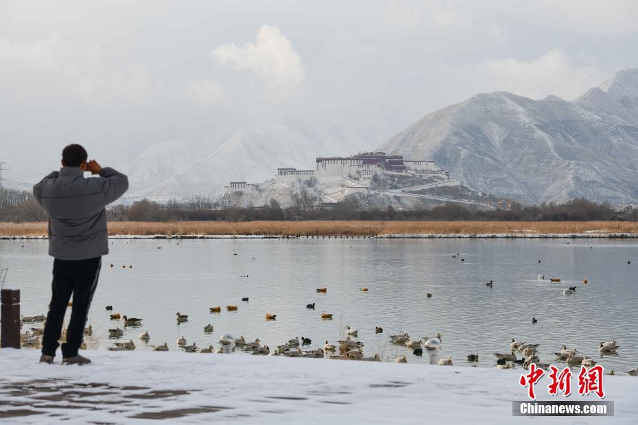 2月21日,從拉魯濕地遠眺布達拉宮。當日,西藏拉薩市迎來降雪,雪后的拉薩城區(qū)和周圍群山白雪皚皚,風景如畫。 中新社記者 貢嘎來松 攝