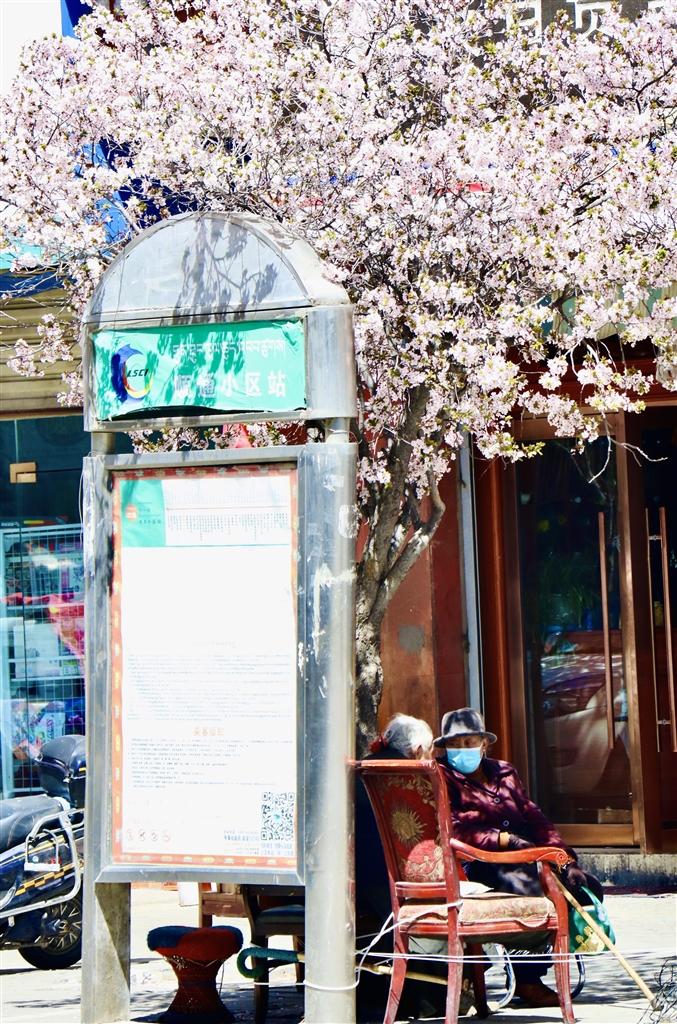 住在拉薩靠北邊的市民同樣能一飽眼福。娘熱北路兩側(cè)的榆葉梅已全部綻放,而緊鄰娘熱路的慈松塘中路和慈松塘東路更是一片春花爛漫的美好景象。慈松塘中路和北路的榆葉梅栽種較為密集,成團(tuán)成簇的淡粉色花朵擠在枝頭,樹下乘涼的老奶奶、樹邊停靠的公交車,在花朵的加持下,隨手一拍便是故事感極強(qiáng)的畫面。