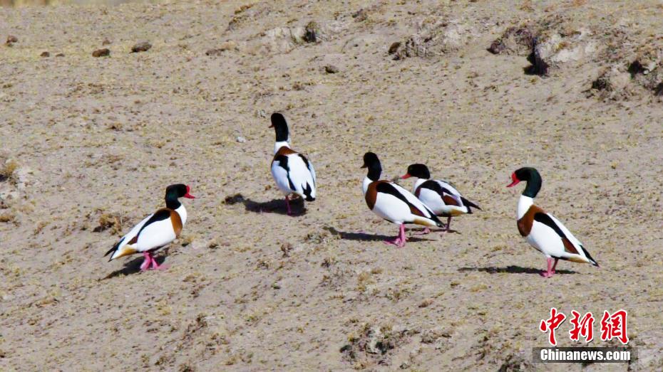 圖為青海湖邊散步的候鳥(niǎo)。 張世偉 攝