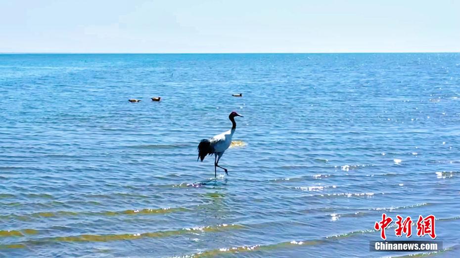 作為中國(guó)最大的內(nèi)陸湖泊,青海湖不僅是維系青藏高原東北部生態(tài)安全的重要水體、控制西部荒漠化向東蔓延的天然屏障,也是中亞、東亞兩條候鳥(niǎo)遷徙路線(xiàn)的交匯點(diǎn),是中國(guó)境內(nèi)候鳥(niǎo)繁殖數(shù)量最多、種群最為集中的繁殖地。圖為在湖邊散步的黑頸鶴。 張世偉 攝