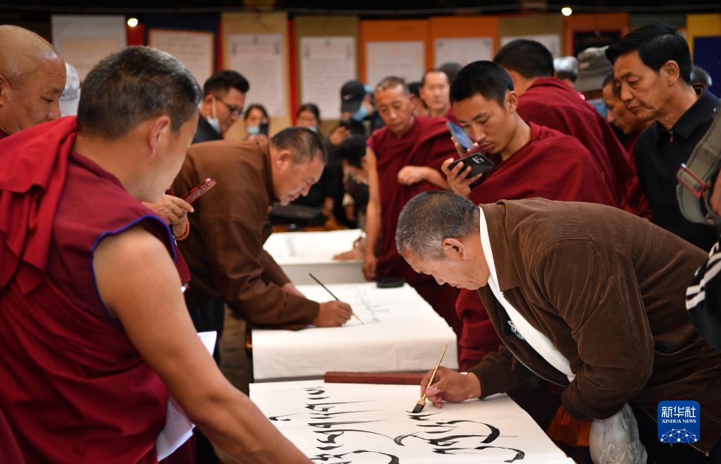 當(dāng)天,西藏拉薩大昭寺舉行第三屆藏文書(shū)法展。50多名僧人創(chuàng)作的120多幅藏文書(shū)法作品,展示了不同字體書(shū)寫(xiě)的藏文之美。 [詳細(xì)]