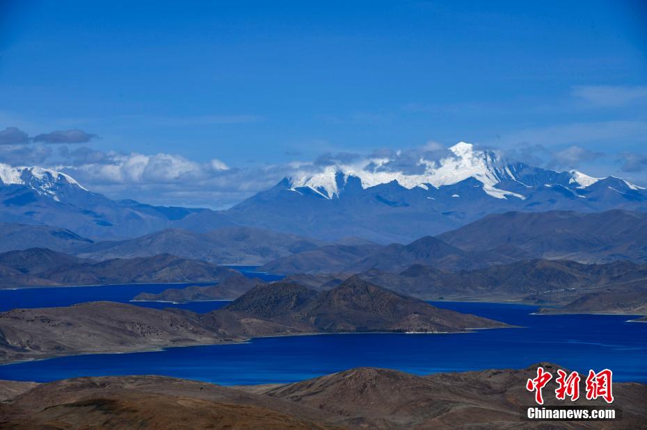 站在直拉山口俯瞰羊卓雍措,深邃藍(lán)的湖水似鑲嵌山間的藍(lán)寶石,與遠(yuǎn)處的庫(kù)拉崗日雪山形成一幅壯美圖卷。圖為羊卓雍措。 李林 攝