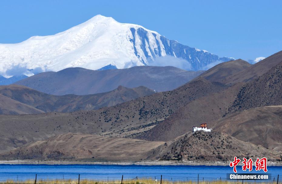 羊卓雍措,藏語(yǔ)意為“碧玉湖”,為西藏三大“圣湖”之一。羊卓雍措東西長(zhǎng)130公里,南北寬70公里,湖岸線總長(zhǎng)250公里。蜿蜒在群山中的羊卓雍措,無(wú)論從那個(gè)角度,都看不到它的全貌。近日,記者就避開(kāi)崗巴拉山口的常規(guī)線路,選擇沿著環(huán)湖線從山南貢嘎縣東拉鄉(xiāng)、浪卡子縣張達(dá)鄉(xiāng)等地觀賞羊卓雍措。圖為羊卓雍措。 李林 攝