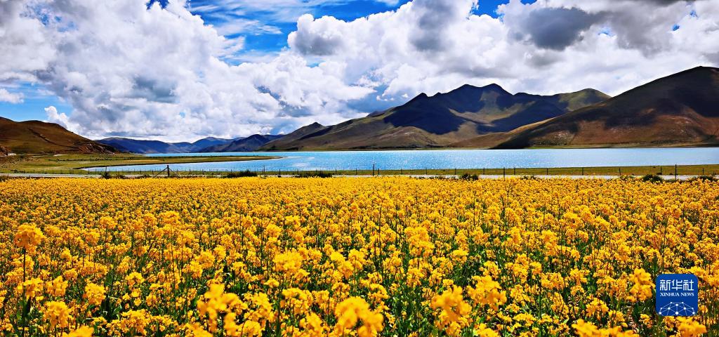 藍天白云下的瑪旁雍錯(8月2日攝)。新華社記者 張汝鋒 攝