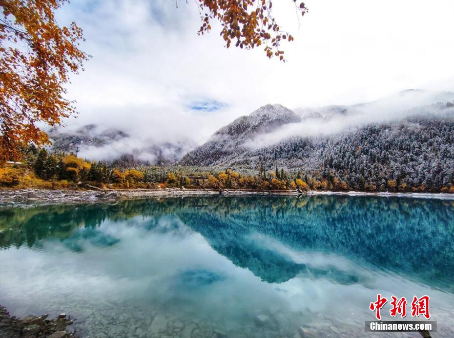 十月,九寨溝長海、原始森林等景點(diǎn)迎來入秋后的第一場雪。澄凈碧藍(lán)的海子和金色的彩林與潔白的雪花相映相襯,構(gòu)成一幅靜謐的美麗畫卷。遠(yuǎn)遠(yuǎn)看去,成片的彩林被一朵朵雪花點(diǎn)綴,美得像童話世界一般。 梁峰 攝