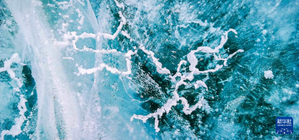 這是瓊穆崗嘎冰川冰湖湖面的“氣泡冰”(手機照片,2月20日攝)。新華社記者 沈虹冰 攝
