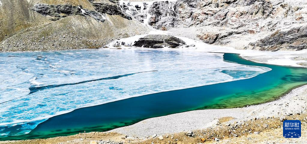 這是瓊穆崗嘎冰川上的一處冰湖(手機照片,2月20日攝)。新華社記者 沈虹冰 攝