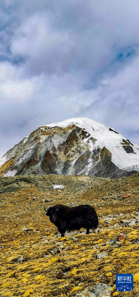 這是瓊穆崗嘎峰下的一頭牦牛(手機照片,2月20日攝)。新華社記者 沈虹冰 攝