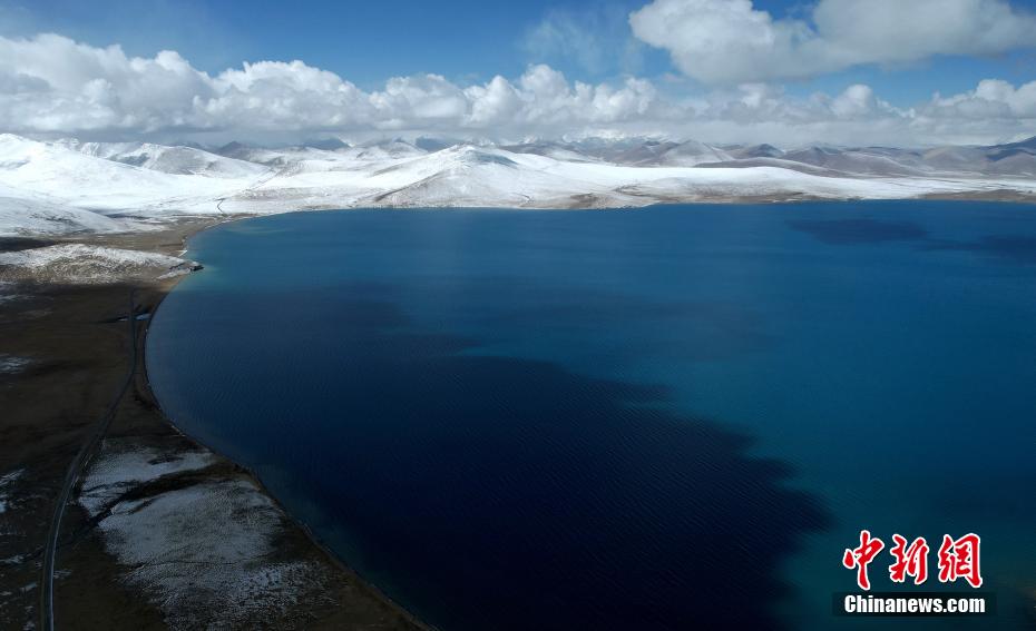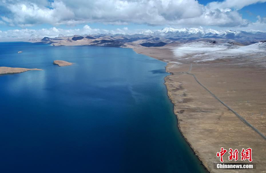 空中俯瞰普姆雍措風光。