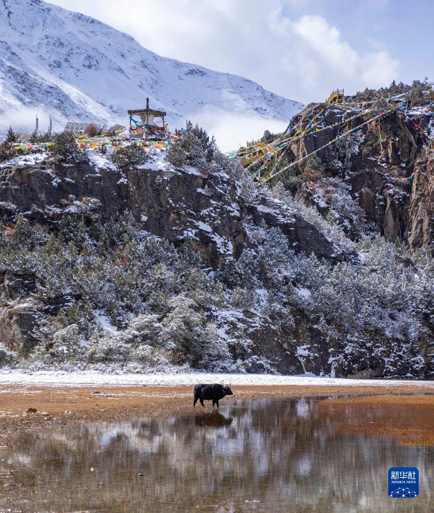 西藏昌都市邊壩縣位于念青唐古拉山脈南麓,由于海拔較高,10月末的邊壩縣已迎來降雪。這里雪山聳立,冰洞湛藍,飛雪綿綿,巖羊在雪面上行走,美景如畫。