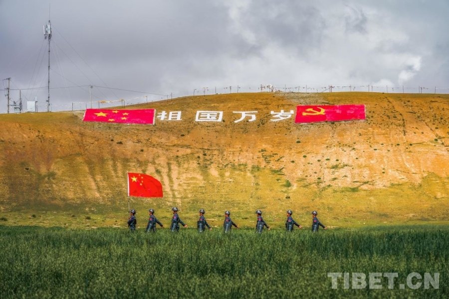 西藏日喀則市崗巴縣崗巴鎮(zhèn)吉汝村有一塊地勢(shì)較高的山坡,2021年,當(dāng)?shù)卮逦瘯?huì)用石頭和混凝土在斜坡上砌了一面黨旗和一面國(guó)旗,中間有“祖國(guó)萬(wàn)歲”四個(gè)白色大字,在村口就能看見(jiàn)這處景觀,十分醒目。每年國(guó)慶節(jié)前夕,派出所都會(huì)組織駐地干部群眾來(lái)這里刷新描紅,只要沒(méi)休假,嘎色每次都會(huì)參加。