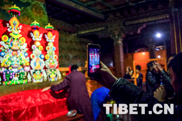 當(dāng)日,大昭寺僧眾還專門舉行法會(huì),誦經(jīng)念佛,酥油花展持續(xù)到深夜。