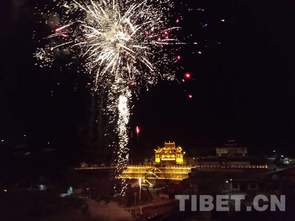 藏歷正月十五是藏傳佛教寺院向信眾展示酥油花的日子。卓尼縣的信教群眾一早就來到寺院中為家人祈福,游客們也爭相前來一睹民俗文化遺產(chǎn)酥油花的絢麗風(fēng)姿。圖為煙花中的寺廟。(中國西藏網(wǎng) 文/宋家麗 圖/松贊)