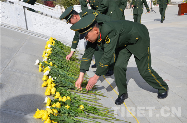 圖為駐拉薩官兵向革命烈士獻花。攝影:王闖