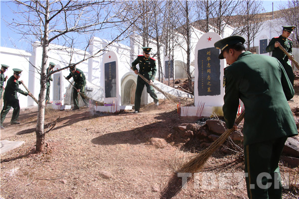 圖為駐芒康官兵清掃烈士墓。攝影:楊寧