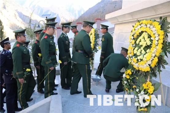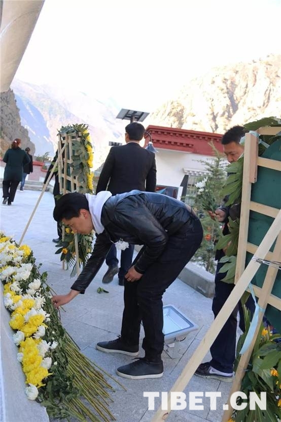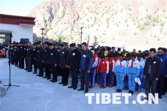 圖為西藏朗縣干部群眾為烈士默哀