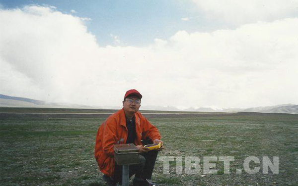 圖為2002年8月27日,劉爭(zhēng)平在青藏線測(cè)溫。