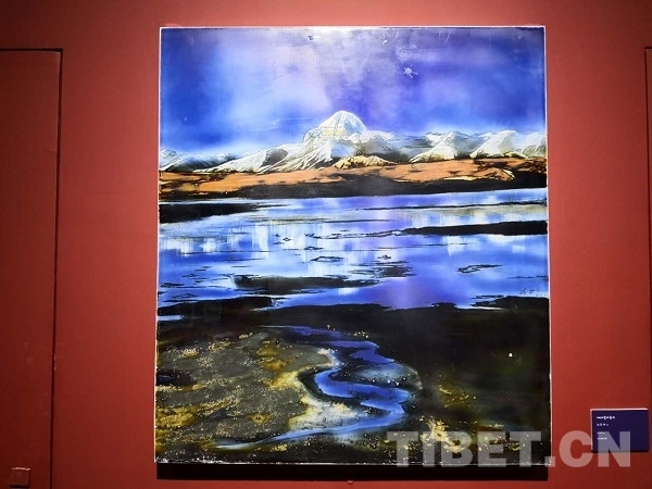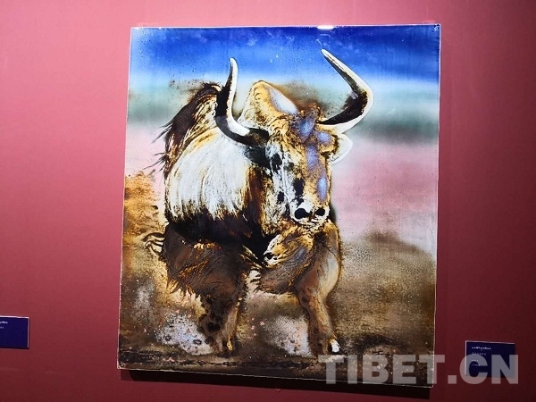 18日當(dāng)天,來自江西景德鎮(zhèn)的陶瓷藝術(shù)家李泉舉辦的“瓷@慈”當(dāng)代藝術(shù)展也在牦牛博物館開幕。展覽以45幅高溫顏色釉作品和一組500多個小件構(gòu)成的裝置藝術(shù)表現(xiàn)西藏的山川和人文?!吧晕鞑兀葠鄹咴?,此次展覽完成了我很久以來的心愿,表達(dá)了自己對西藏高原和藏族人民的理解與認(rèn)識”,李泉說。