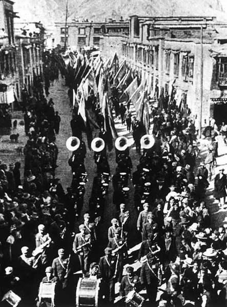 中國人民解放軍第18軍入藏部隊(duì)入城式,進(jìn)入八廓街。興華 攝