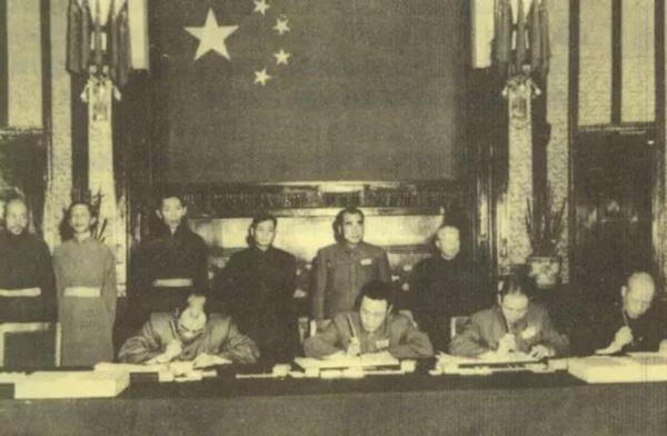 中央人民政府全權(quán)代表和西藏地方政府全權(quán)代表經(jīng)過近一個月的談判之后,對和平解放西藏各項(xiàng)事宜取得了一致的意見。1951年5月23日,《中央人民政府與西藏地方政府關(guān)于和平解放西藏辦法的協(xié)議》在北京正式簽訂。同年10月16日,人民解放軍根據(jù)“十七條協(xié)議”規(guī)定進(jìn)駐西藏拉薩,隨后進(jìn)駐各邊防要地。