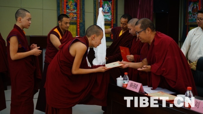 參加此次培訓(xùn)的學(xué)僧,雖然年齡小,但都表現(xiàn)出勤奮刻苦的精神面貌。有7名學(xué)員在西黃寺受沙彌戒,因緣殊勝。其中,云丹凱卻以綜合成績(jī)排名第一被評(píng)為優(yōu)秀學(xué)員,拿到了獎(jiǎng)學(xué)金。他在發(fā)言中表示:“經(jīng)過(guò)近一年的努力,我們收獲滿滿,佛學(xué)水平有了很大提升,辯經(jīng)能力得到鍛煉,藏漢雙語(yǔ)水平明顯加強(qiáng)”,“下周我們將前往甘青藏藏傳佛教寺廟進(jìn)行辯經(jīng)實(shí)習(xí),現(xiàn)在感到特別高興。在中國(guó)學(xué)習(xí),受益匪淺,心懷感恩。”