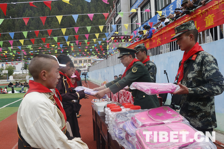 中國西藏網(wǎng)訊 在“六?一”兒童節(jié)來臨之際,武警某部交通第三支隊(duì)官兵走進(jìn)西藏自治區(qū)林芝市波密縣古鄉(xiāng)武警愛民希望小學(xué)和西藏自治區(qū)昌都市芒康縣嘎托鎮(zhèn)中心小學(xué),進(jìn)行“六?一”慰問。官兵為孩子們送來節(jié)日的關(guān)愛,帶去了書籍、書包、籃球等價(jià)值近5萬元的文體用品。