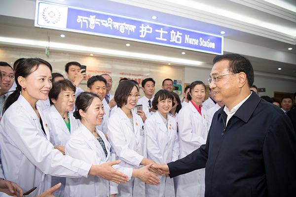 圖為李克強看望援藏醫(yī)護人員。圖片來源:中國政府網