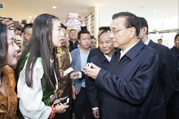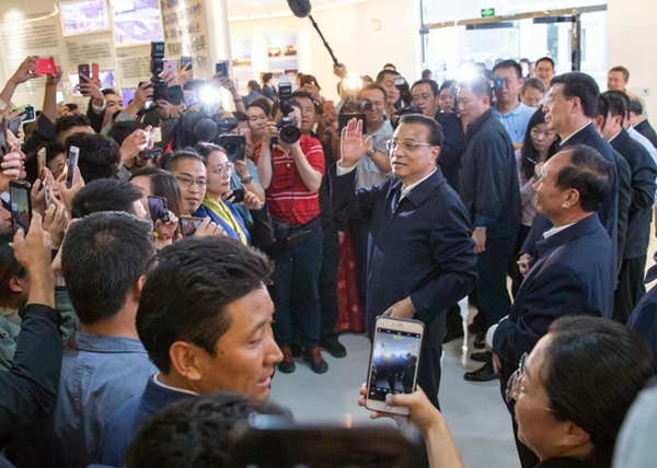 圖為李克強總理來到位于拉薩市柳梧新區(qū)的“柳梧蜂巢+創(chuàng)新中心” 圖片來源:中國政府網