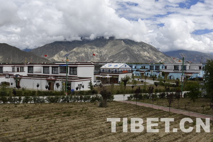在四季吉祥村,十一世班禪考察了該村一站式服務中心、健身房、農家書屋、村史館,并走訪慰問扶貧搬遷戶,了解他們的生產生活情況。圖為四季吉祥村。攝影:扎西
