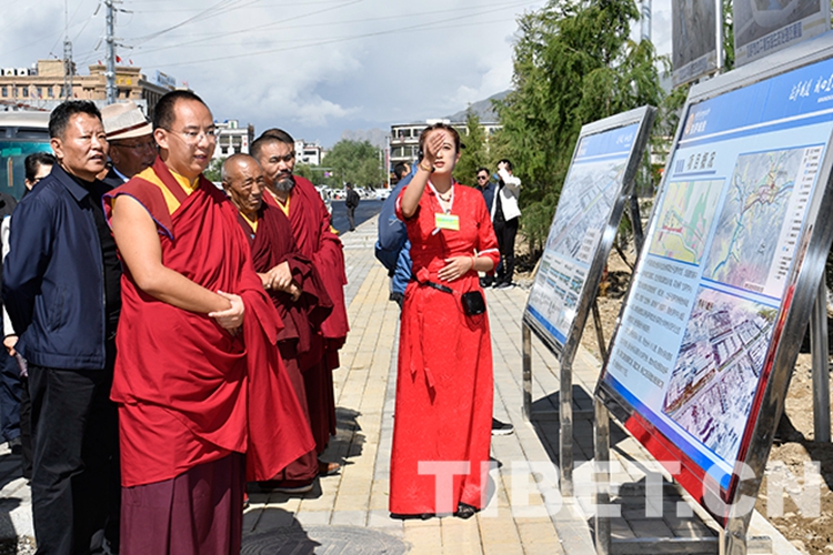 3)在西藏自治區(qū)高法小區(qū)前,十一世班禪參觀了城市生態(tài)水系修復試點項目施工現(xiàn)場。
