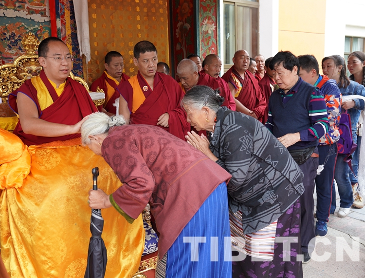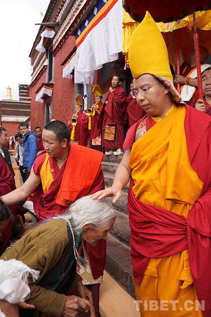 十一世班禪在雪林多吉頗章為信眾摸頂賜福。攝影:王淑